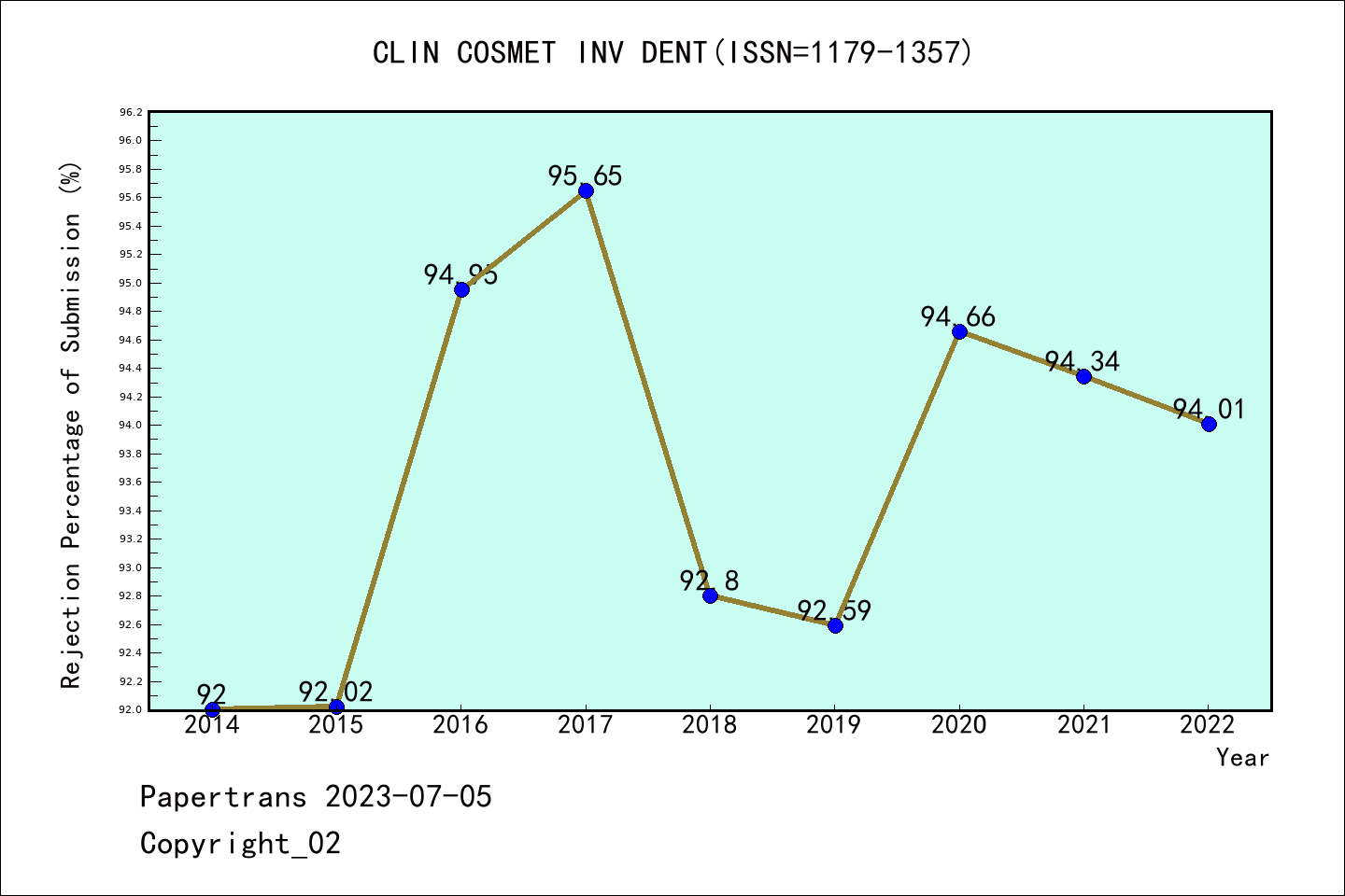 ESCI期刊Clinical Cosmetic and Investigational Dentistry历年拒稿占比