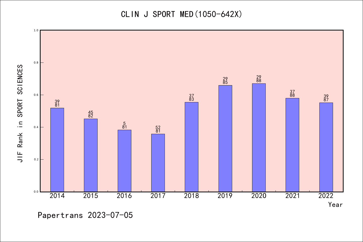 CLINICAL JOURNAL OF SPORT MEDICINE派博系数(Pindex)学科排名@SCIE体育科学