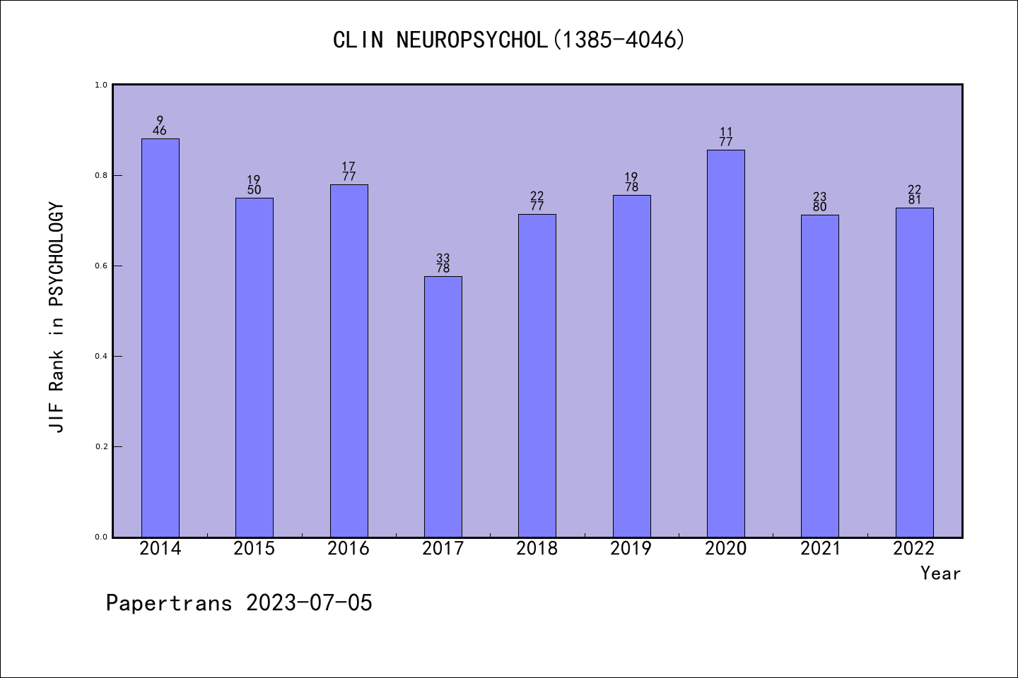 CLINICAL NEUROPSYCHOLOGIST派博系数(Pindex)学科排名@SCIE心理学