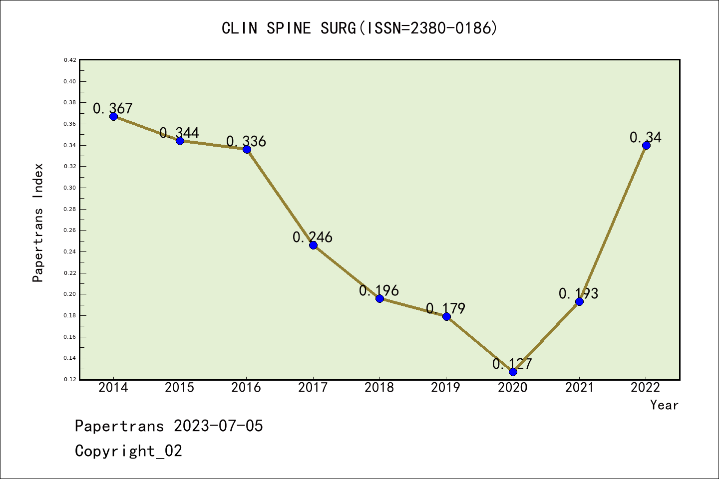 SCIE期刊Clinical Spine Surgery历年派博系数(Pindex)