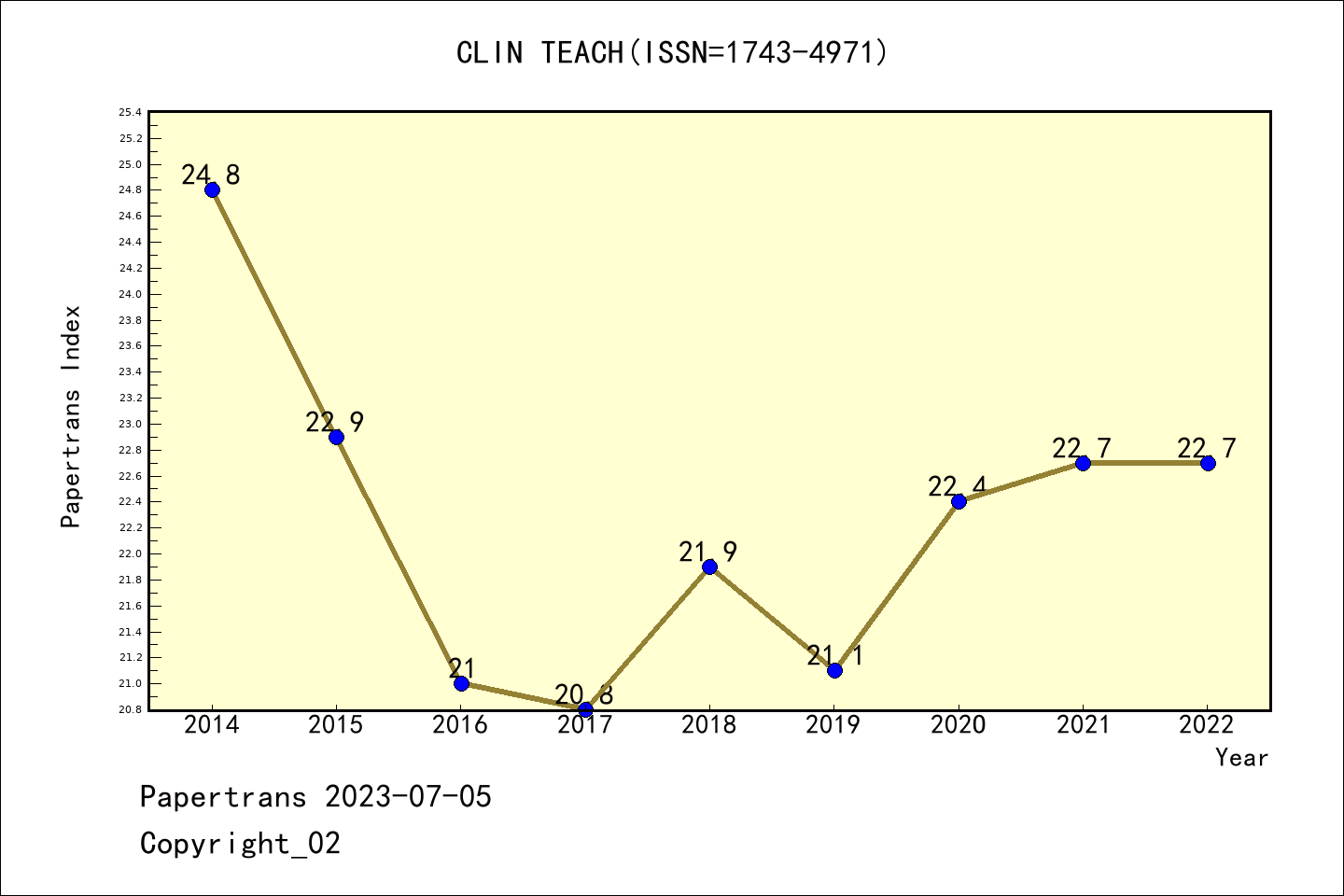 ESCI期刊Clinical Teacher历年派博系数(Pindex)