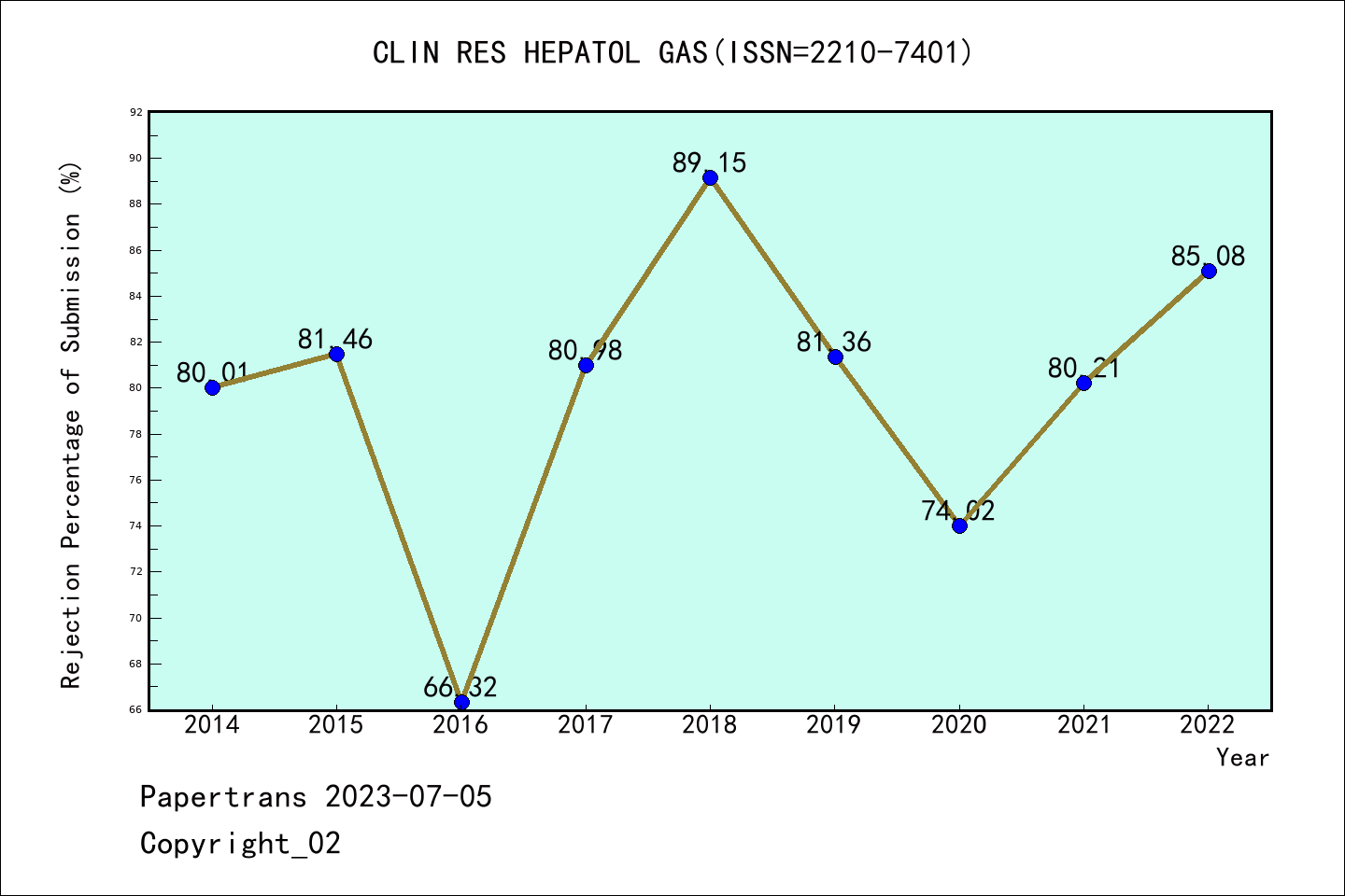 SCIE期刊Clinics and Research in Hepatology and Gastroenterology历年拒稿占比