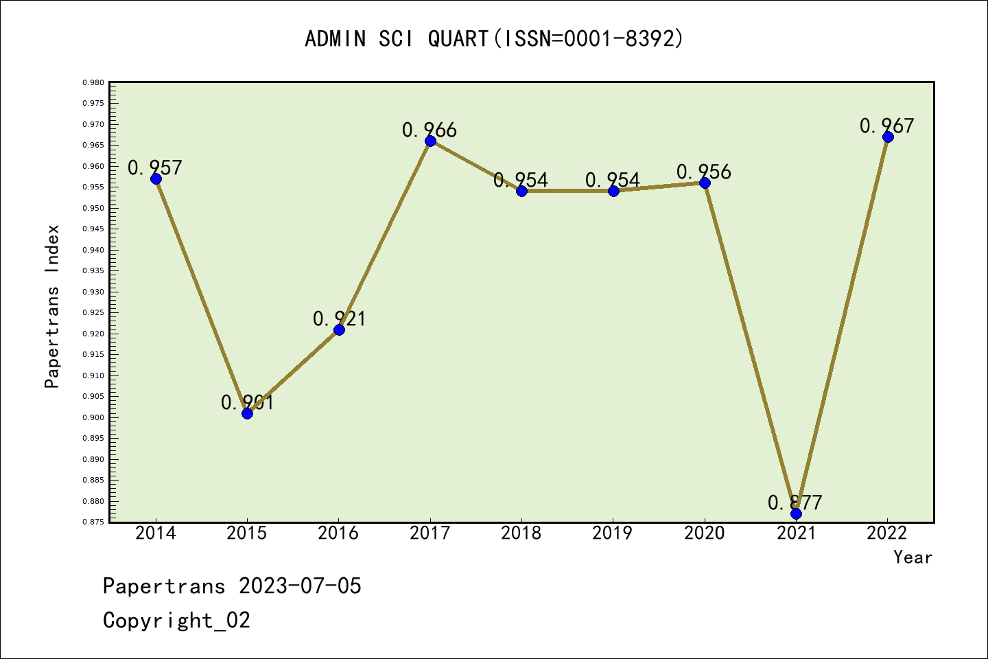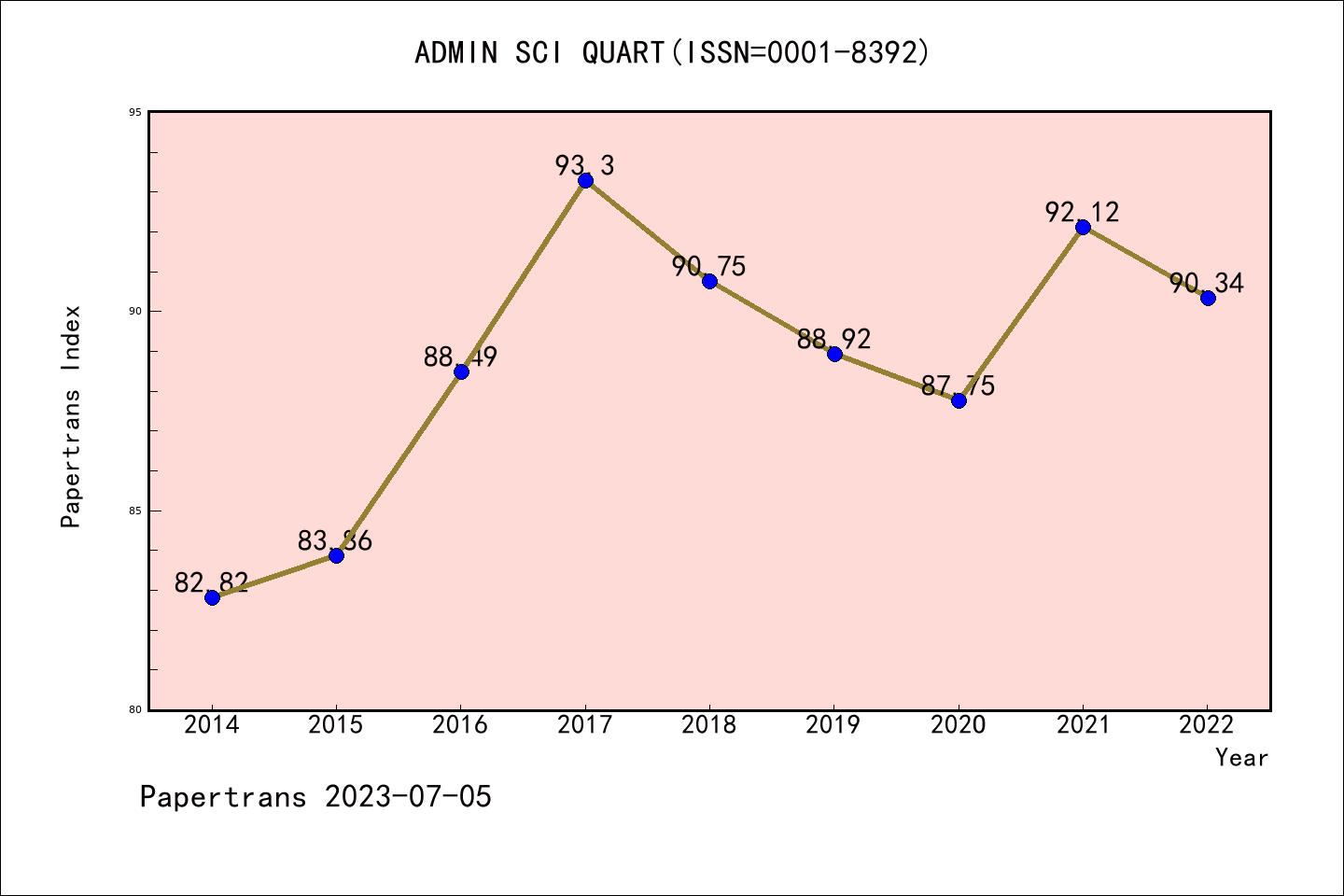 SSCI期刊ADMINISTRATIVE SCIENCE QUARTERLY历年派博系数(Pindex)