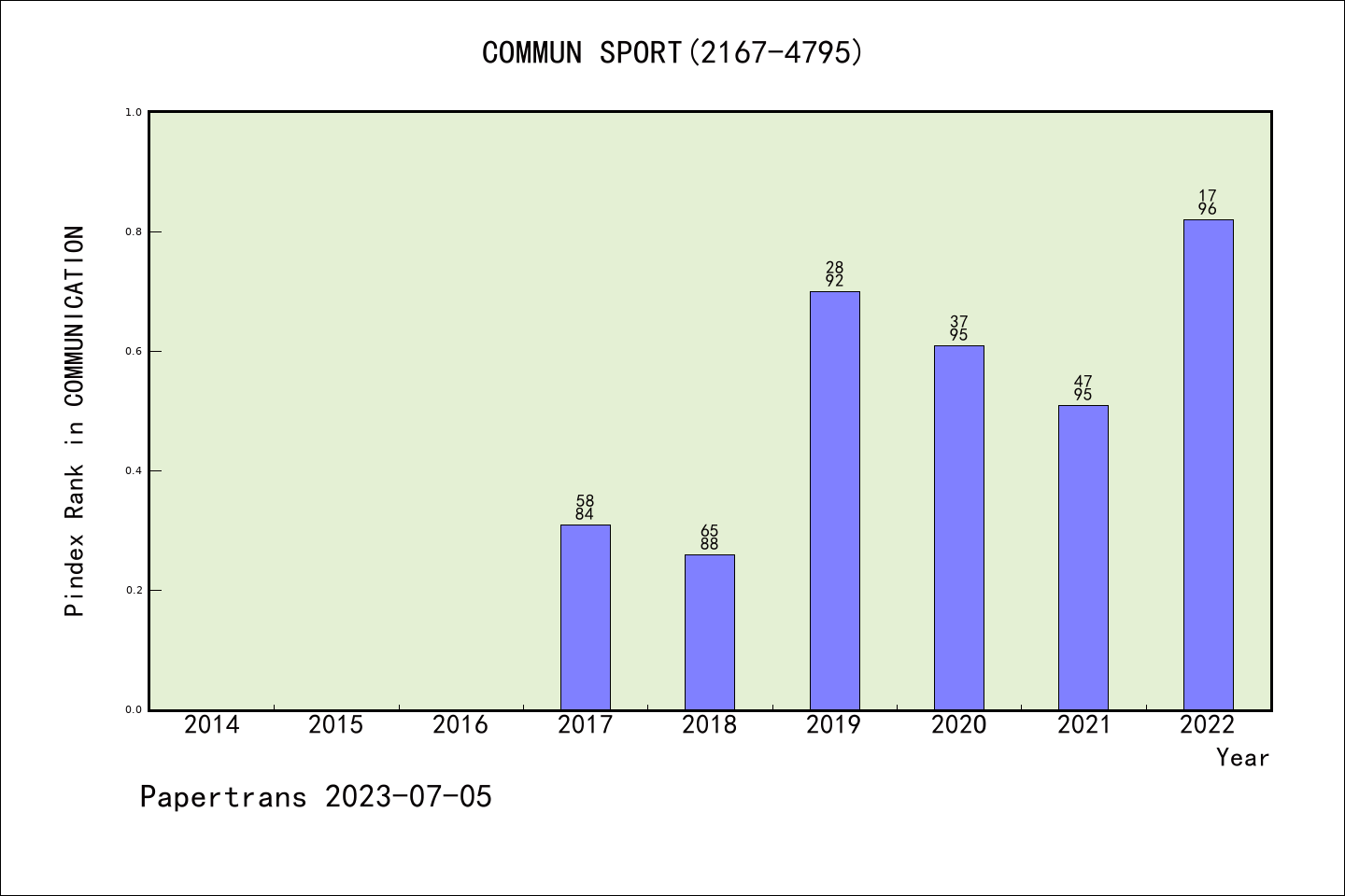 SSCI期刊Communication & Sport历年派博系数(Pindex)