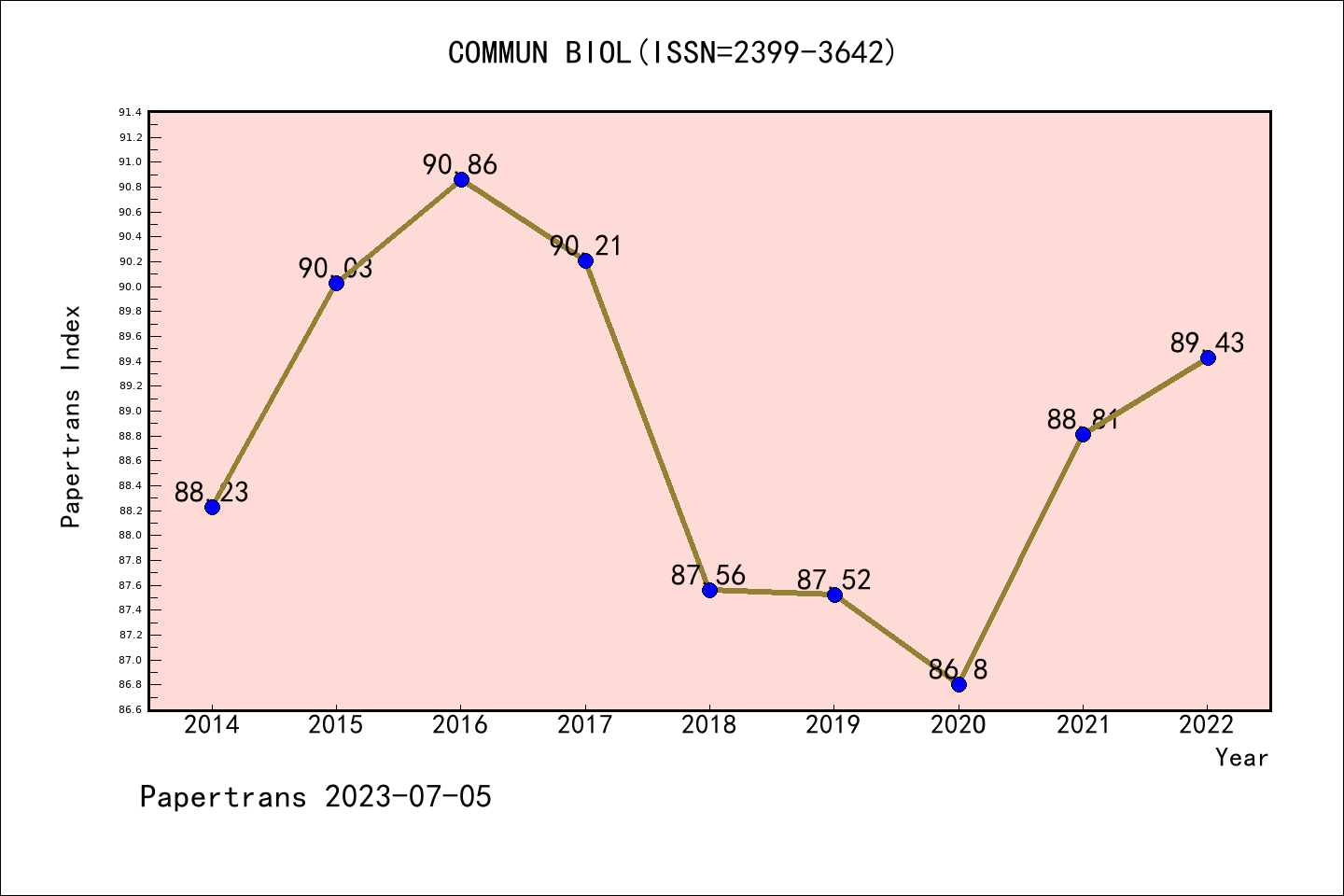 SCIE期刊Communications Biology历年派博系数(Pindex)