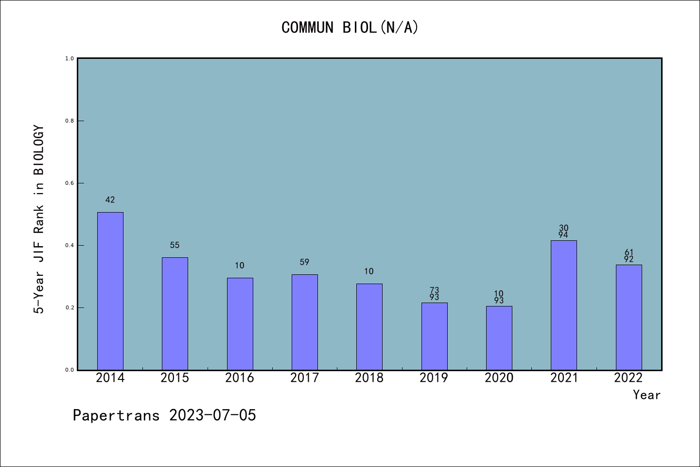 Communications Biology体裁与题裁多样性排名@SCIE生物学