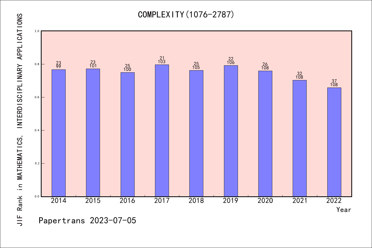 SCIE期刊COMPLEXITY历年派博系数(Pindex)