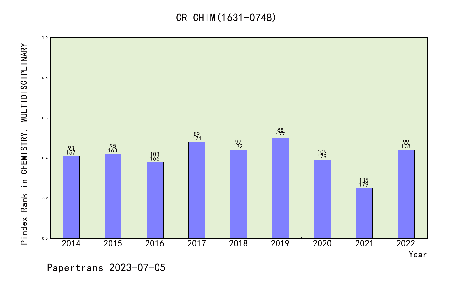 SCIE期刊COMPTES RENDUS CHIMIE历年派博系数(Pindex)