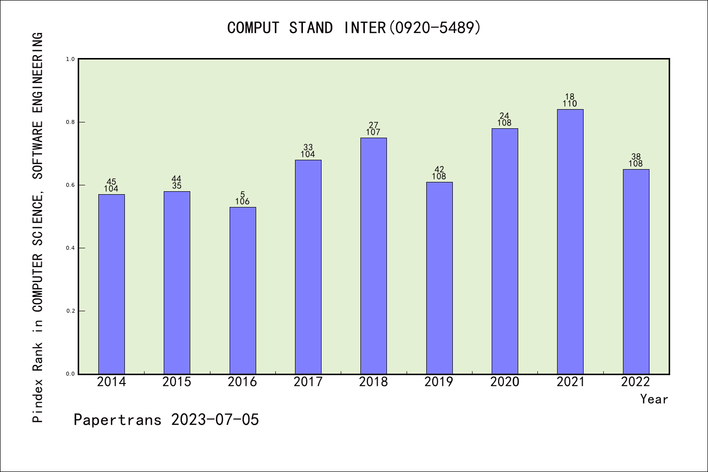 COMPUTER STANDARDS & INTERFACES派博系数(Pindex)学科排名@SCIE计算机软件工程