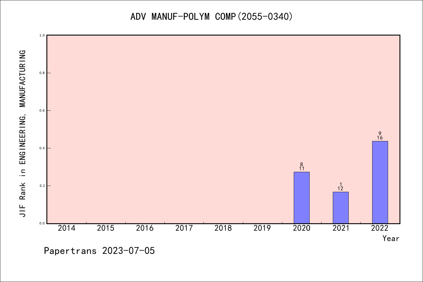 ESCI期刊Advanced Manufacturing-Polymer & Composites Science历年派博系数(Pindex)