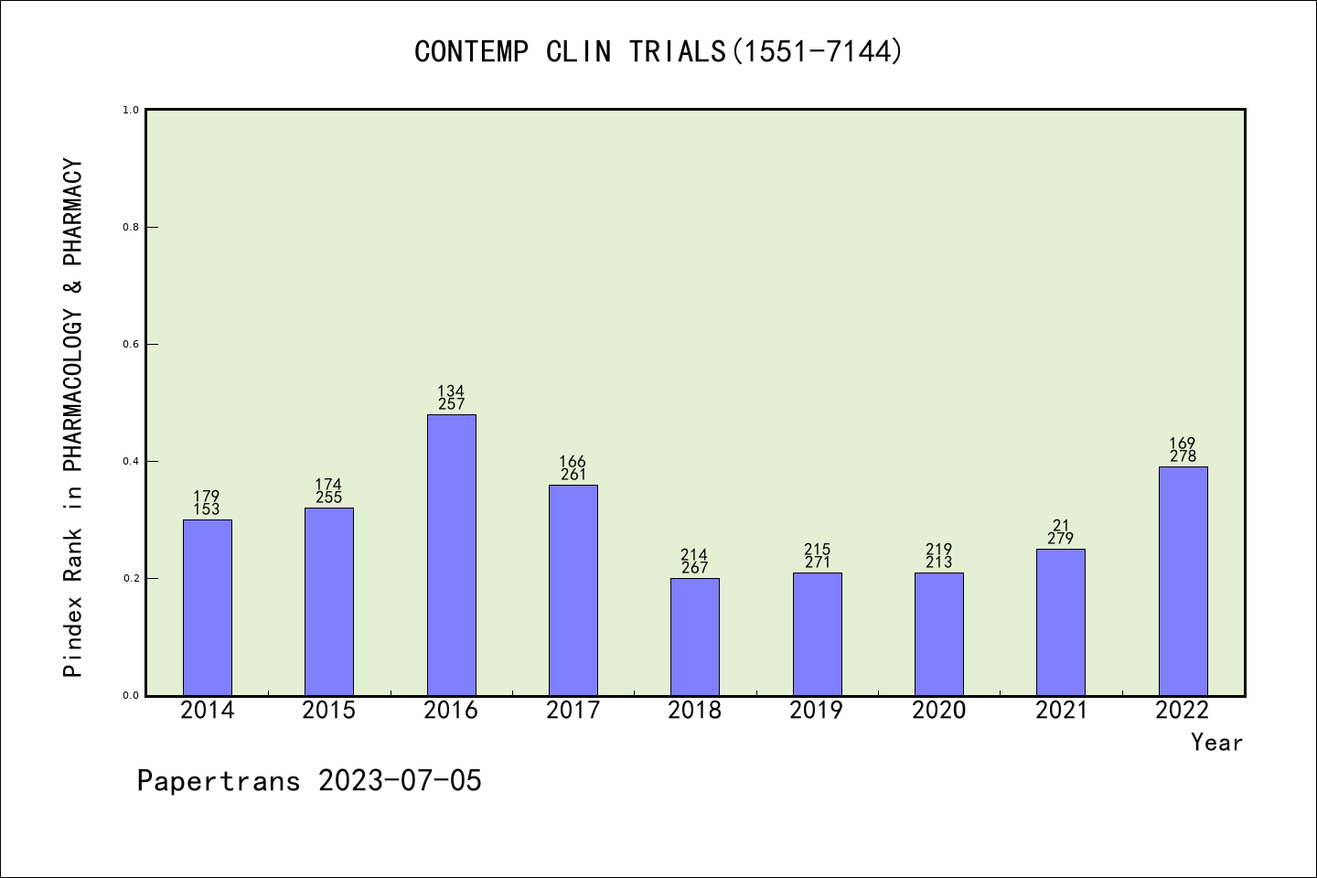 CONTEMP CLIN TRIALS图表质量排名@SCIE药理学