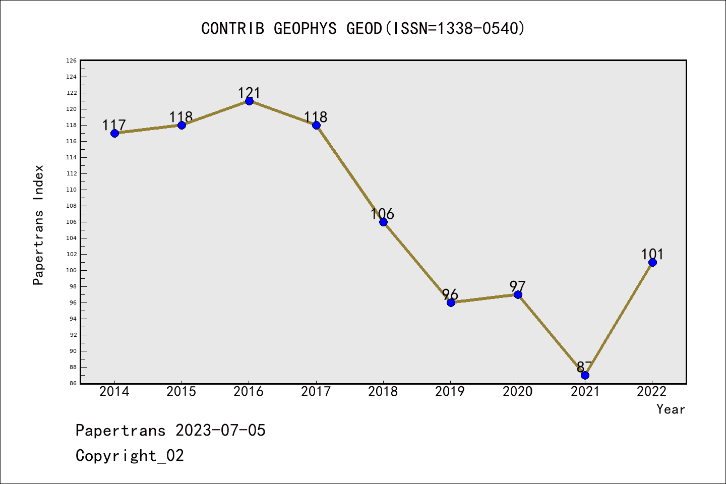 ESCI期刊Contributions to Geophysics and Geodesy历年派博系数(Pindex)