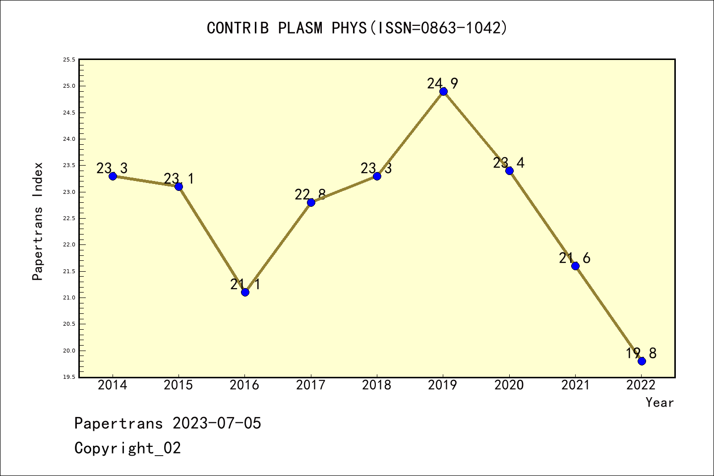 SCIE期刊CONTRIBUTIONS TO PLASMA PHYSICS历年派博系数(Pindex)