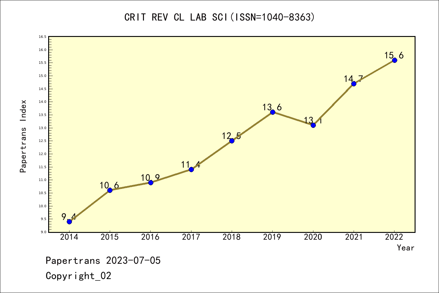 SCIE期刊CRITICAL REVIEWS IN CLINICAL LABORATORY SCIENCES历年派博系数(Pindex)