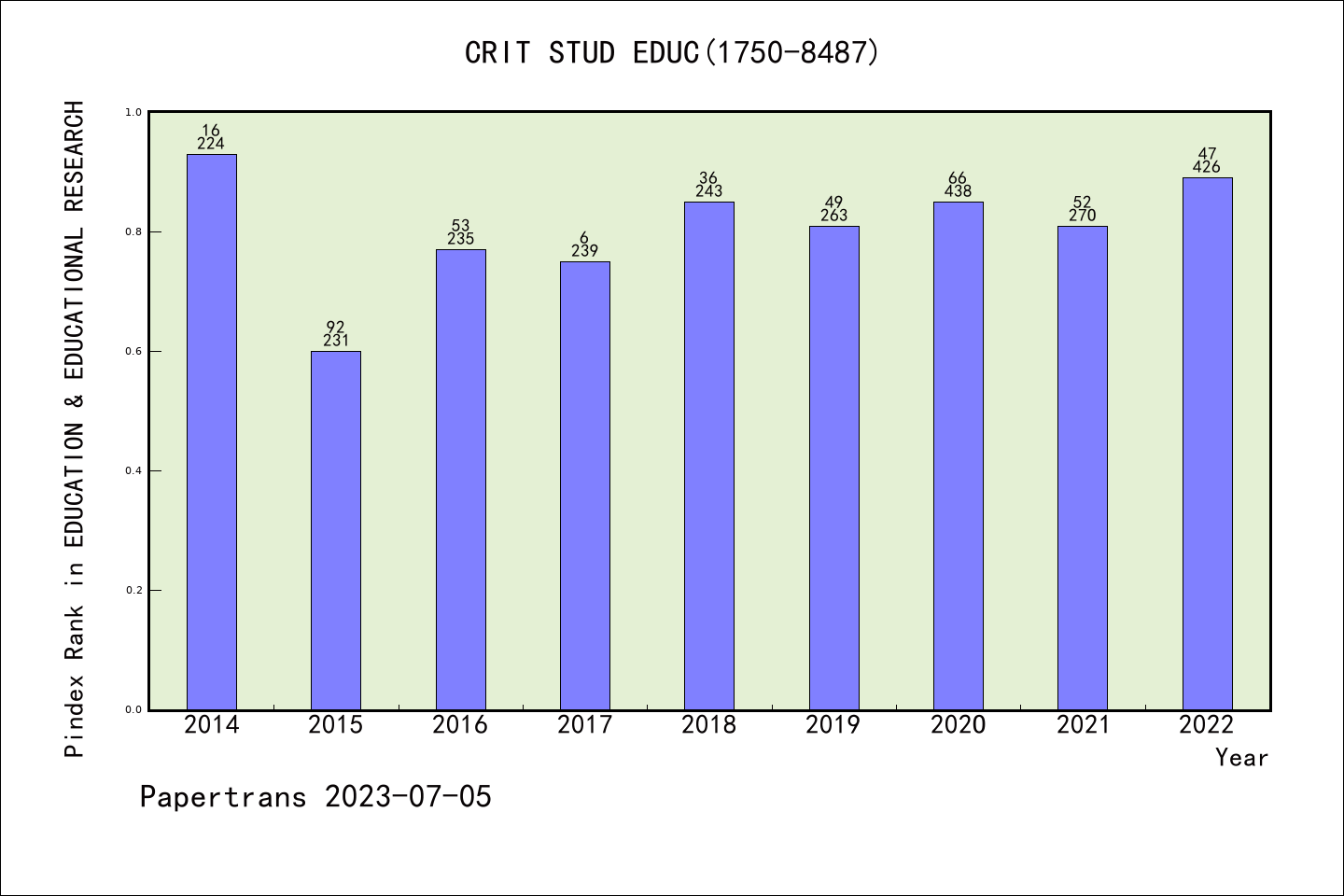 Critical Studies in Education派博系数(Pindex)学科排名@SSCI教育与教育研究