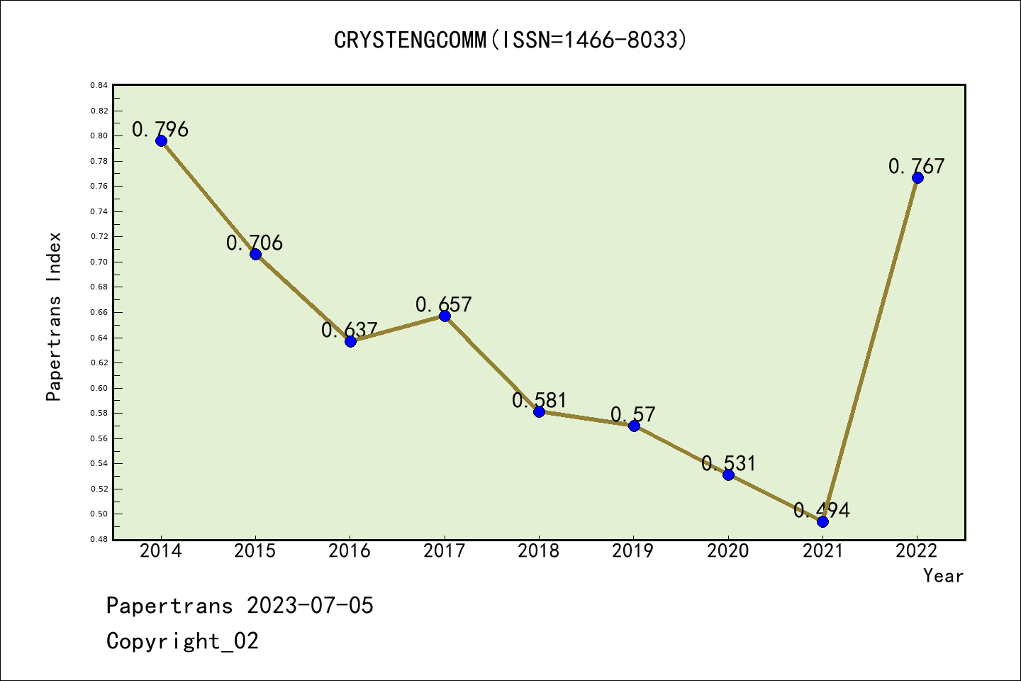 SCIE期刊CRYSTENGCOMM历年派博系数(Pindex)