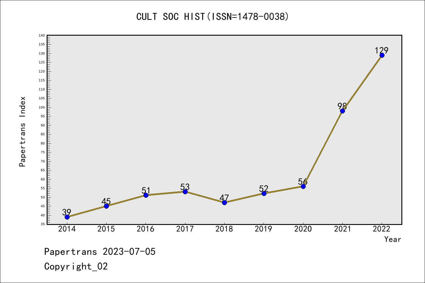 AHCI期刊Cultural & Social History历年派博系数(Pindex)