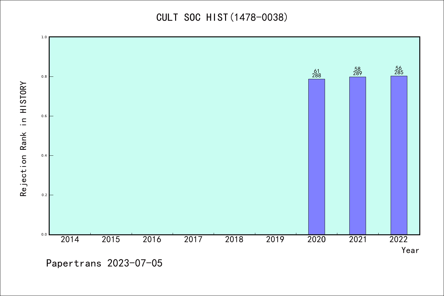 AHCI期刊Cultural & Social History历年拒稿占比