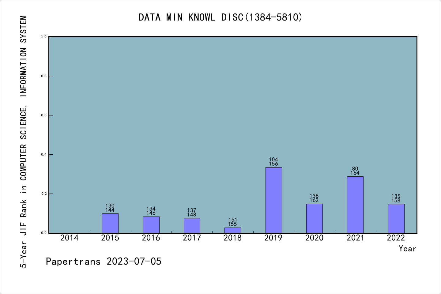 DATA MIN KNOWL DISC图表质量排名@SCIE计算机科学、信息系统