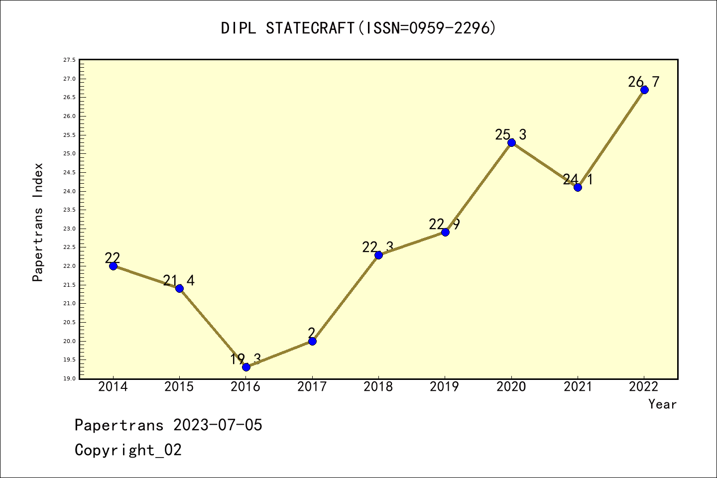 SSCI期刊Diplomacy & Statecraft历年派博系数(Pindex)