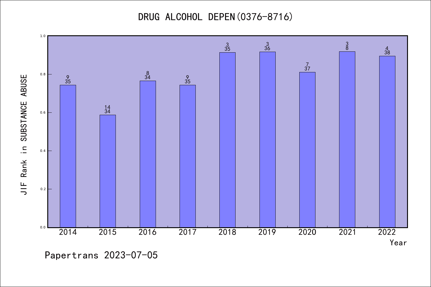 SSCI期刊DRUG AND ALCOHOL DEPENDENCE历年派博系数(Pindex)