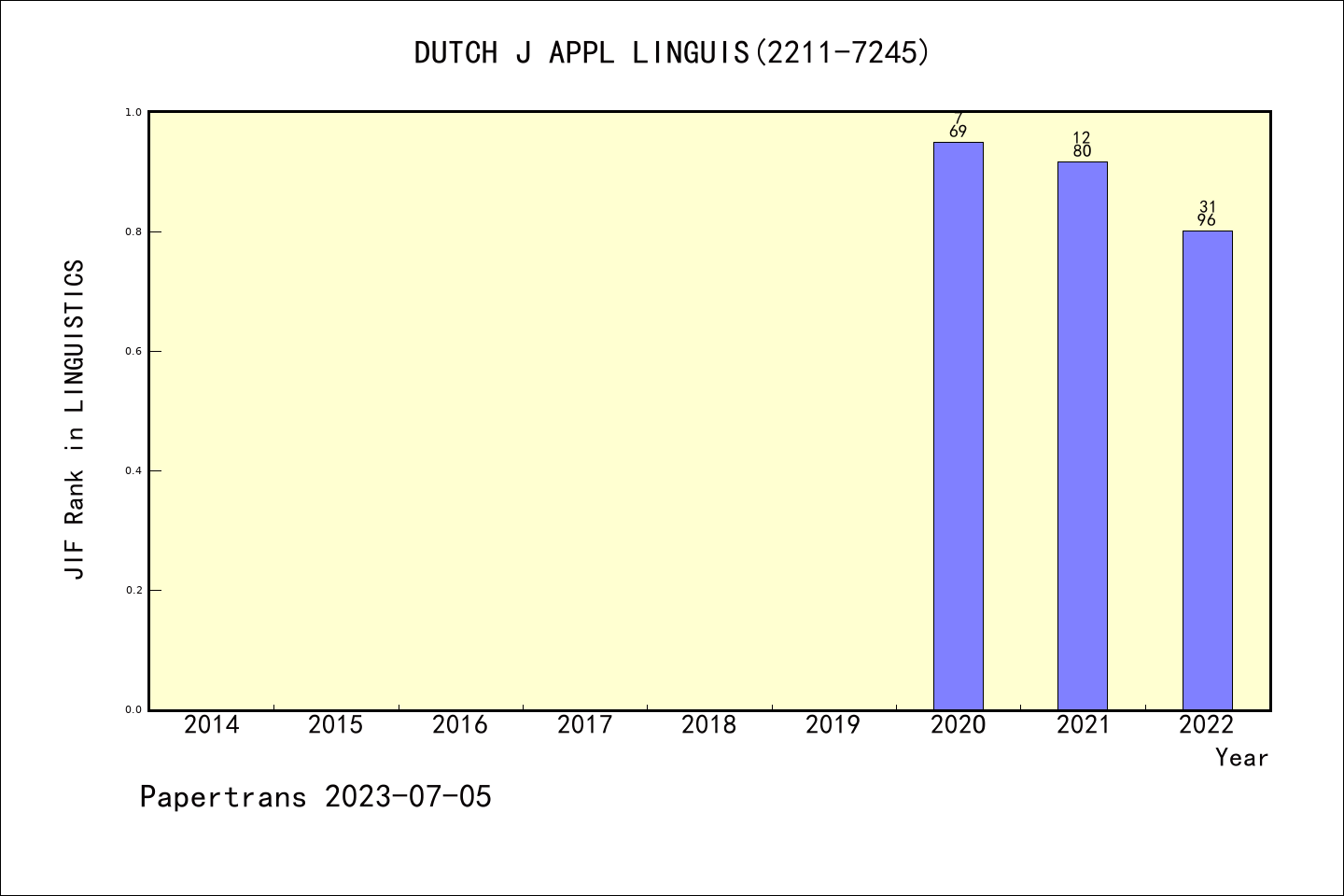 DUTCH J APPL LINGUIS图表质量排名@ESCI语言学