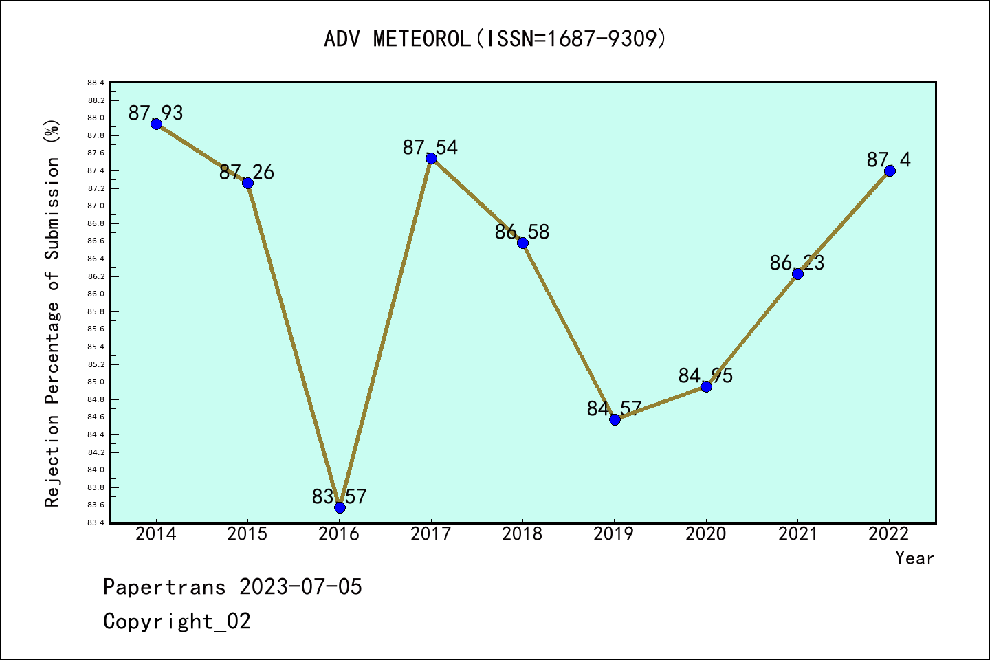 SCIE期刊Advances in Meteorology历年拒稿占比