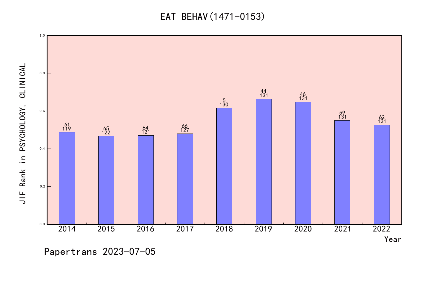 Eating Behaviors派博系数(Pindex)学科排名@SSCI临床心理学
