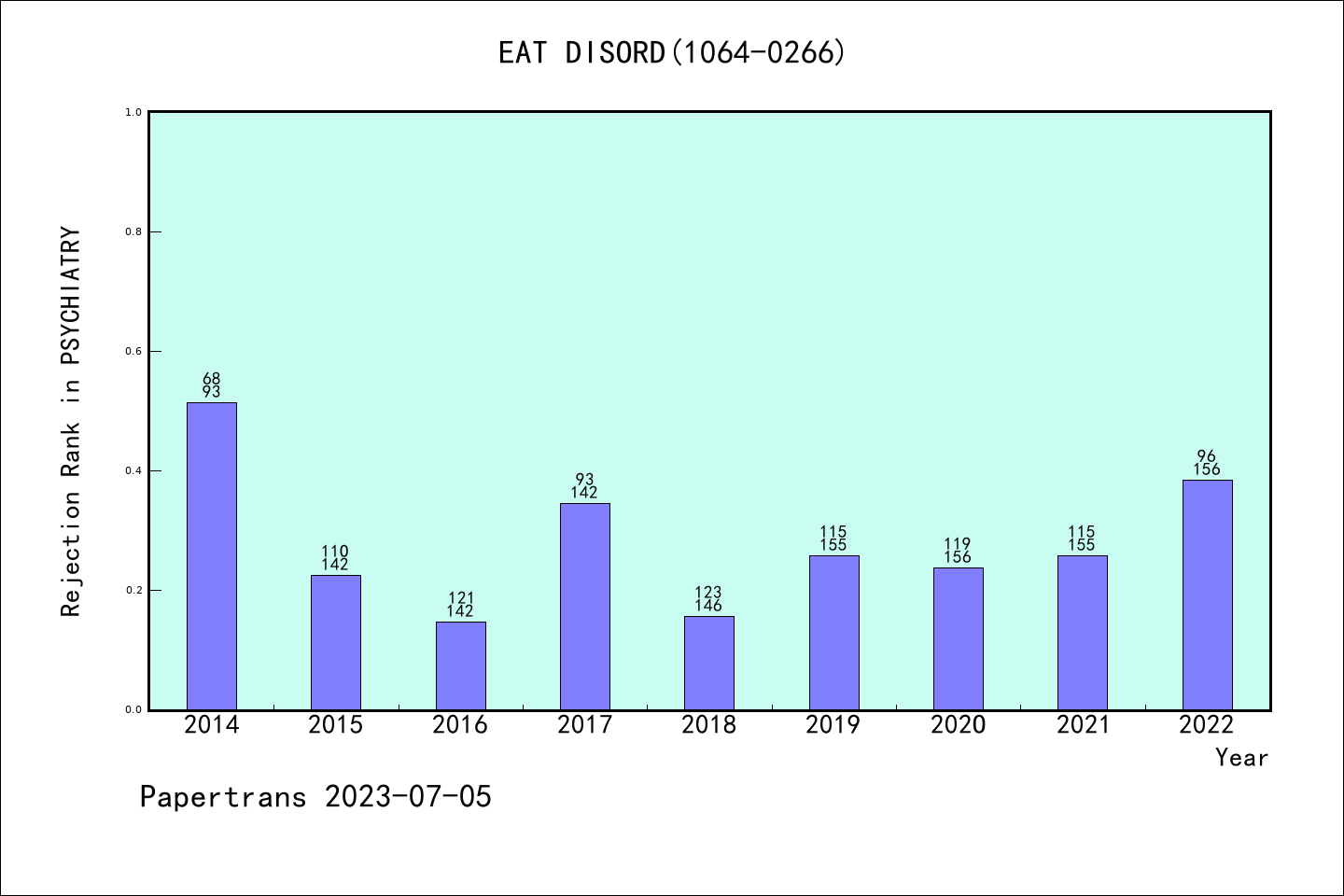 SCIE期刊Eating Disorders历年拒稿占比