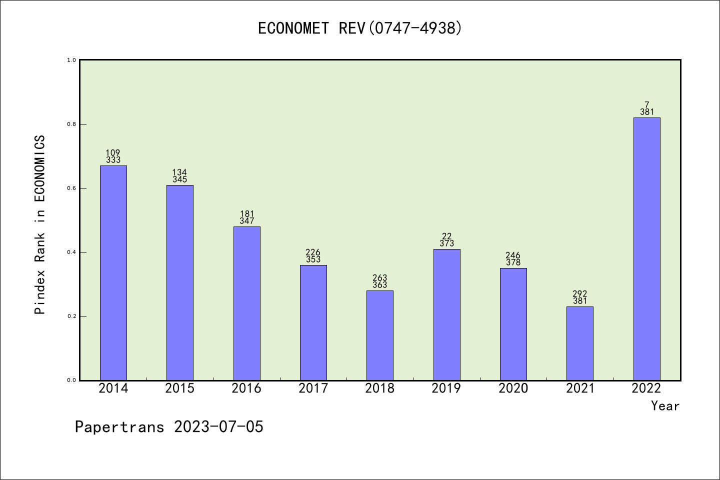 SSCI期刊Econometric Reviews历年派博系数(Pindex)