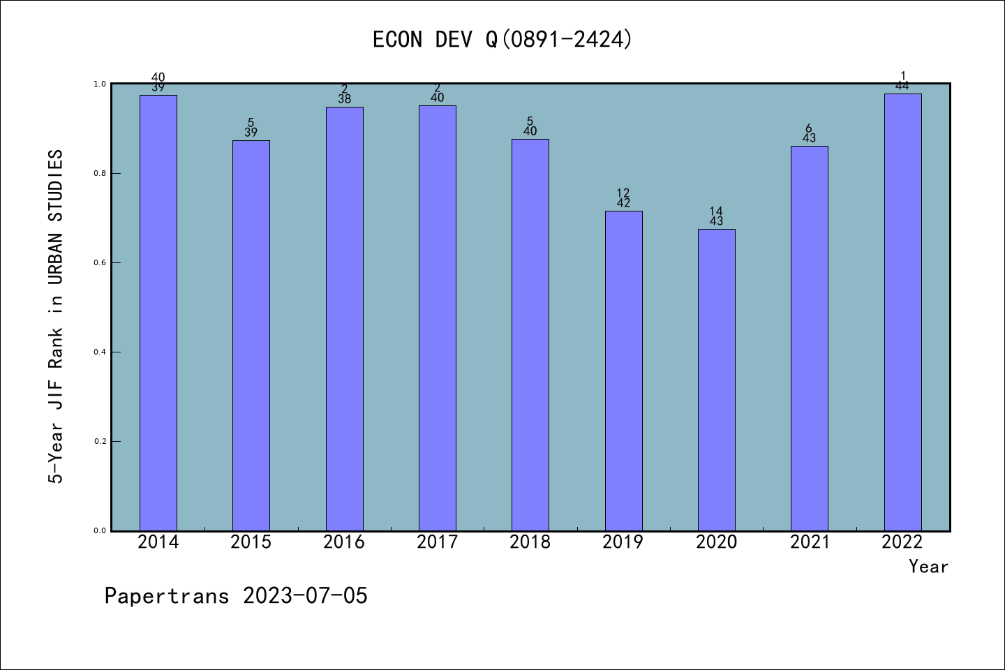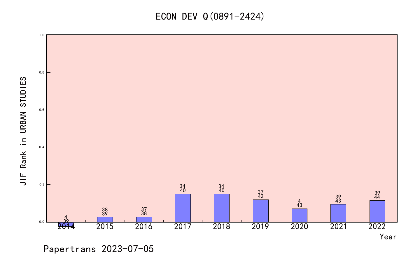 SSCI期刊ECONOMIC DEVELOPMENT QUARTERLY历年派博系数(Pindex)