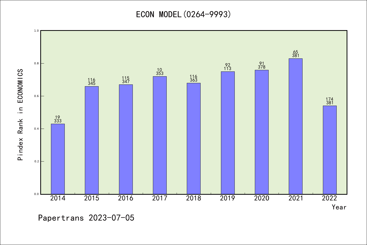 ECONOMIC MODELLING派博系数(Pindex)学科排名@SSCI经济学