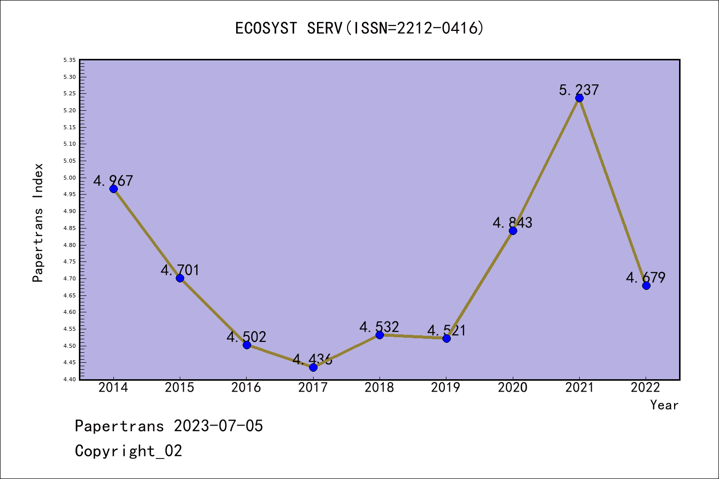 SCIE期刊Ecosystem Services历年派博系数(Pindex)