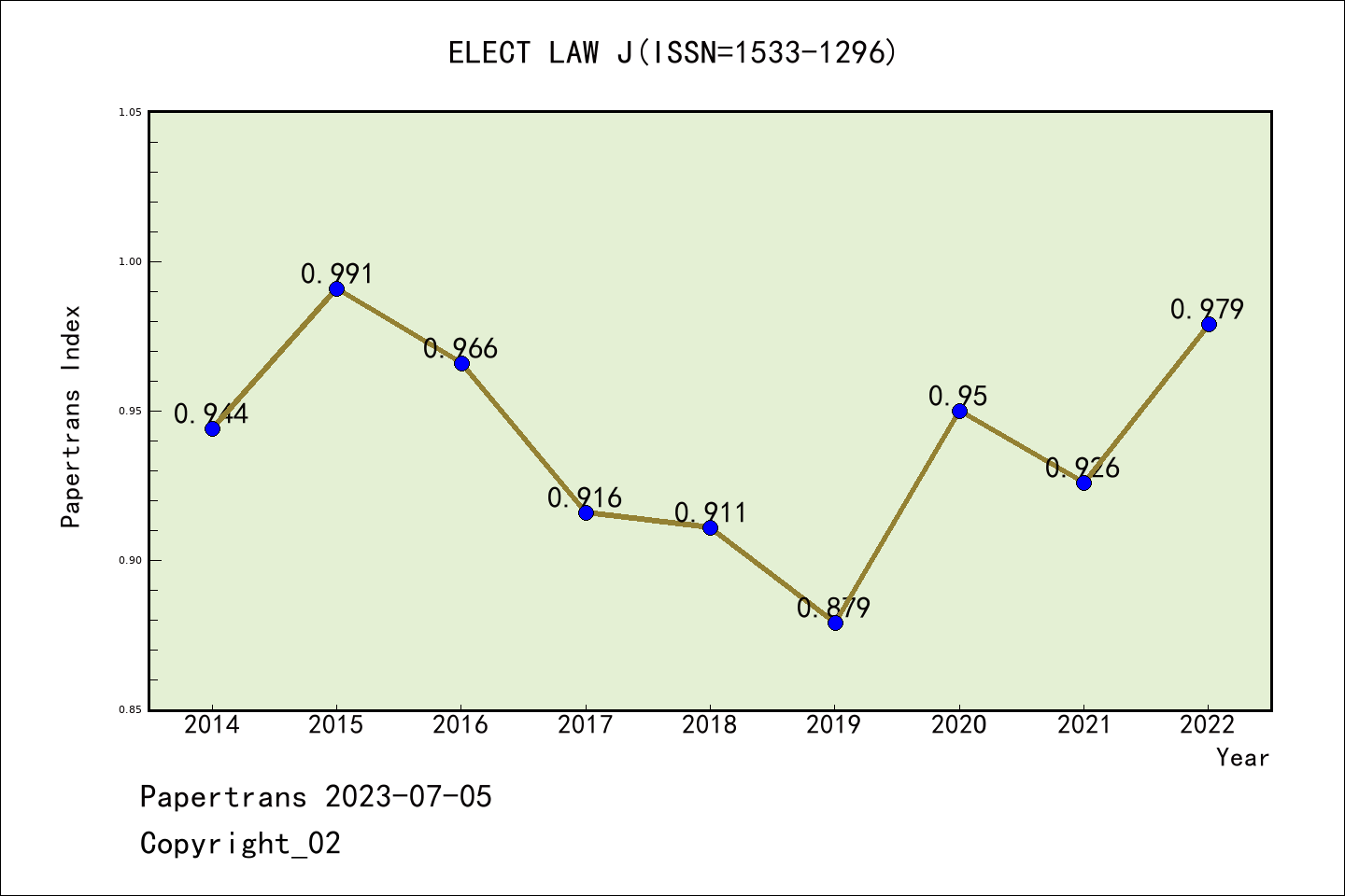 ESCI期刊Election Law Journal历年派博系数(Pindex)