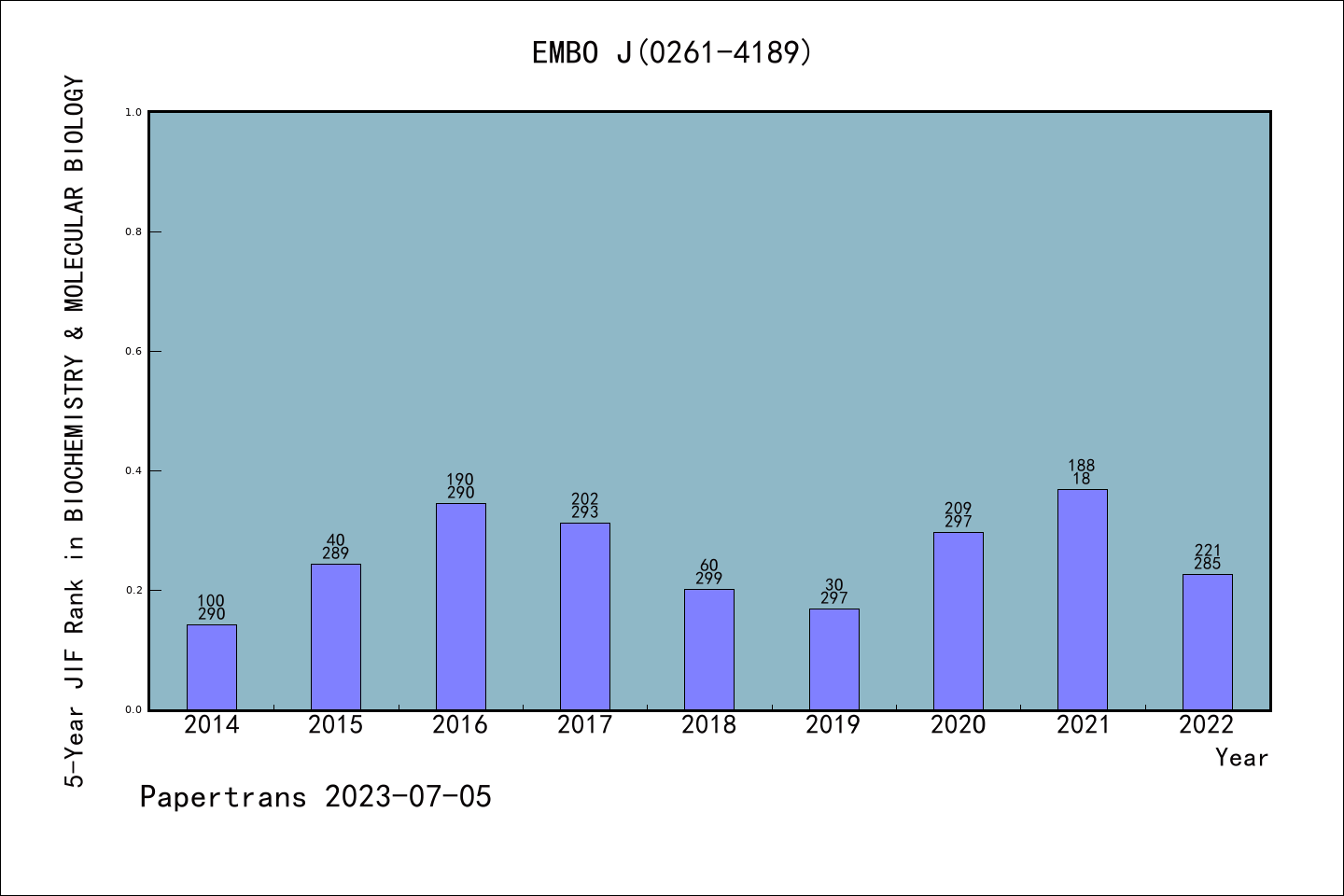 EMBO JOURNAL拒稿率学科排名@SCIE生物化学与分子生物学