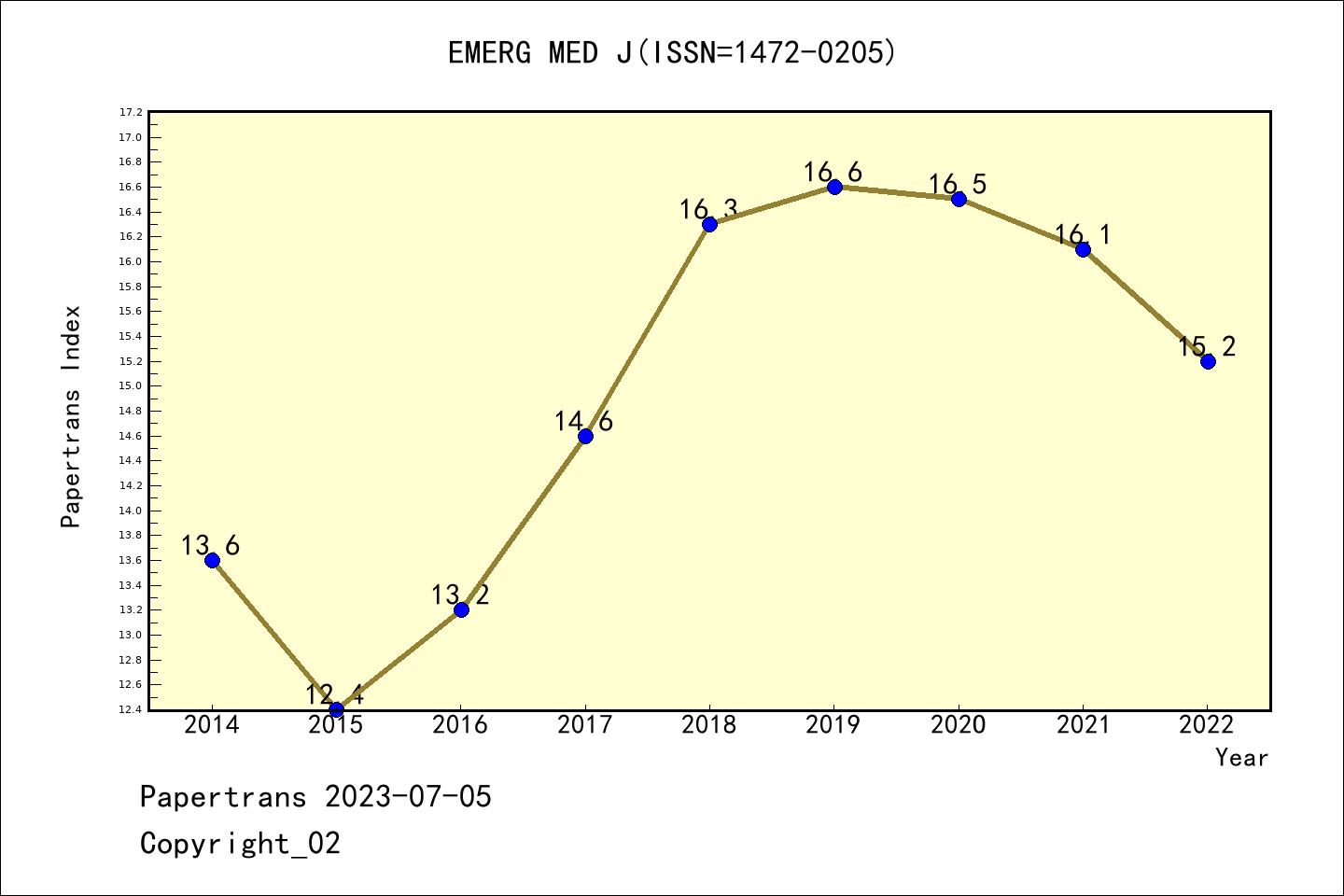 SCIE期刊EMERGENCY MEDICINE JOURNAL历年派博系数(Pindex)