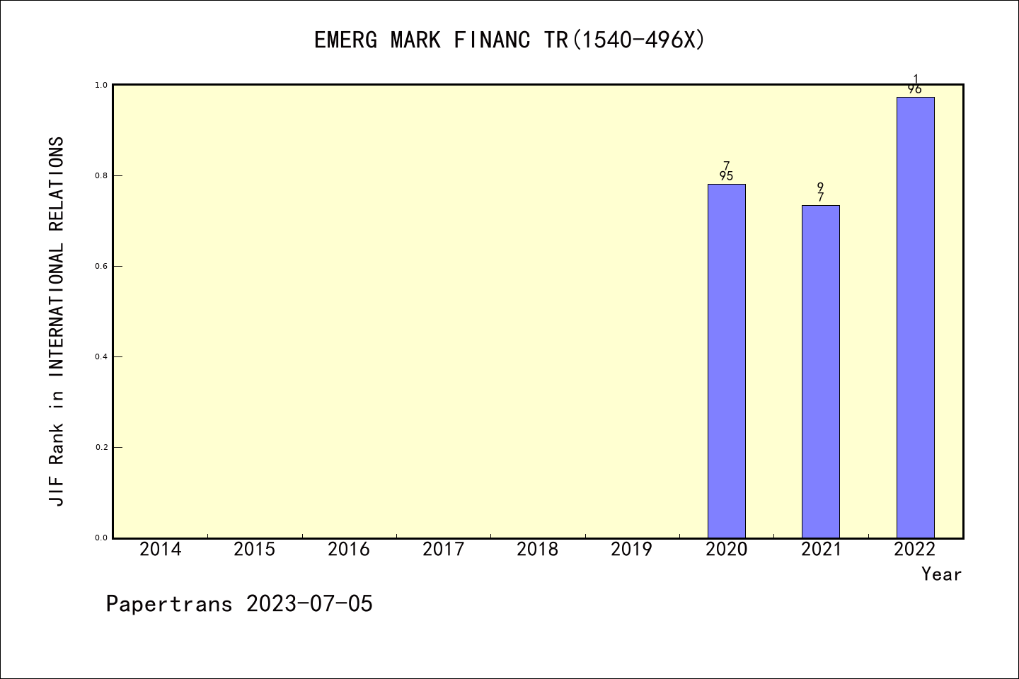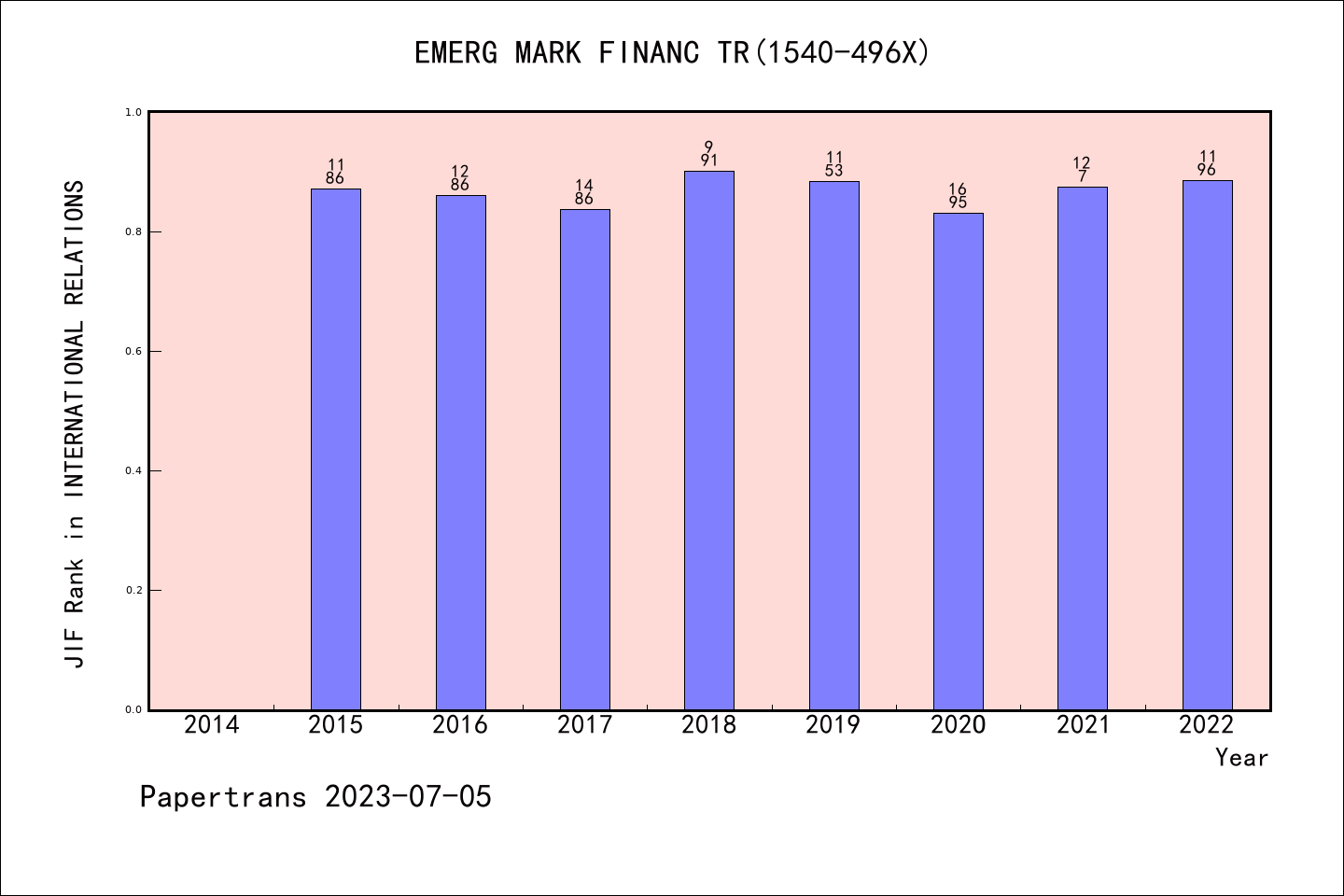 EMERGING MARKETS FINANCE AND TRADE派博系数(Pindex)学科排名@SSCI国际关系