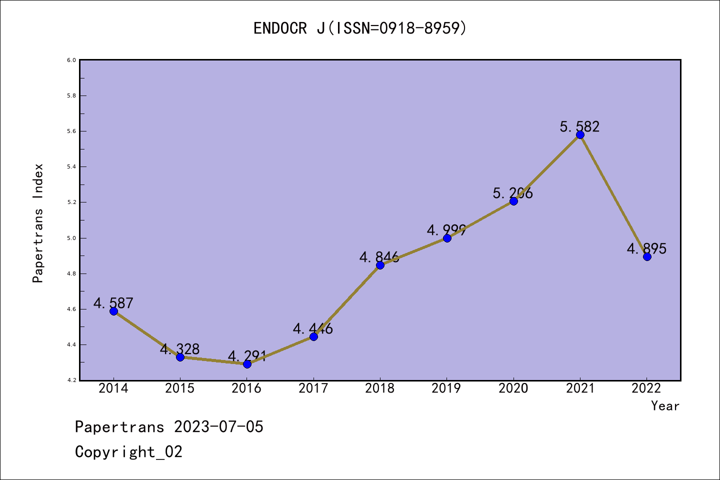 SCIE期刊ENDOCRINE JOURNAL历年派博系数(Pindex)