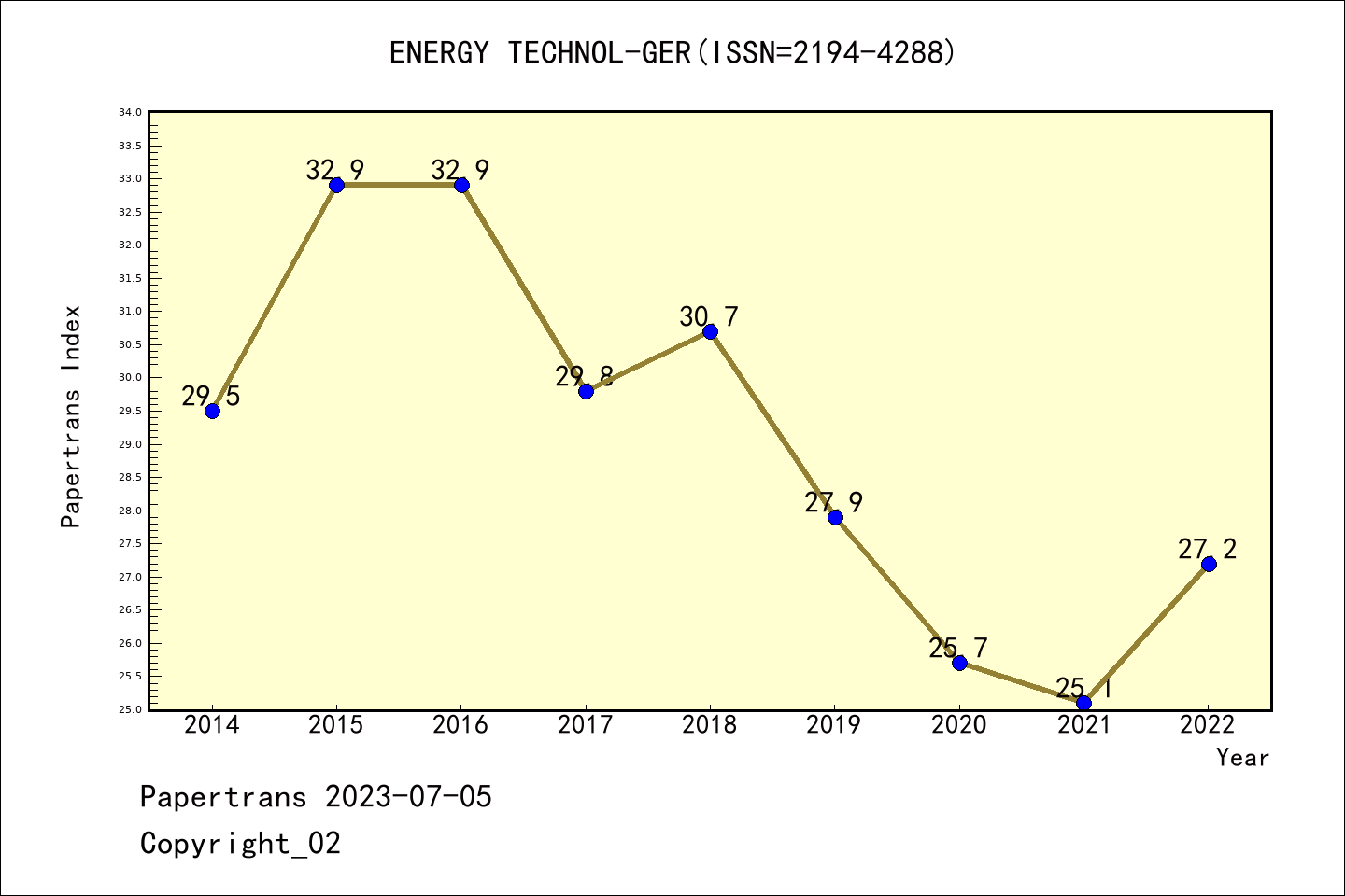 SCIE期刊Energy Technology历年派博系数(Pindex)