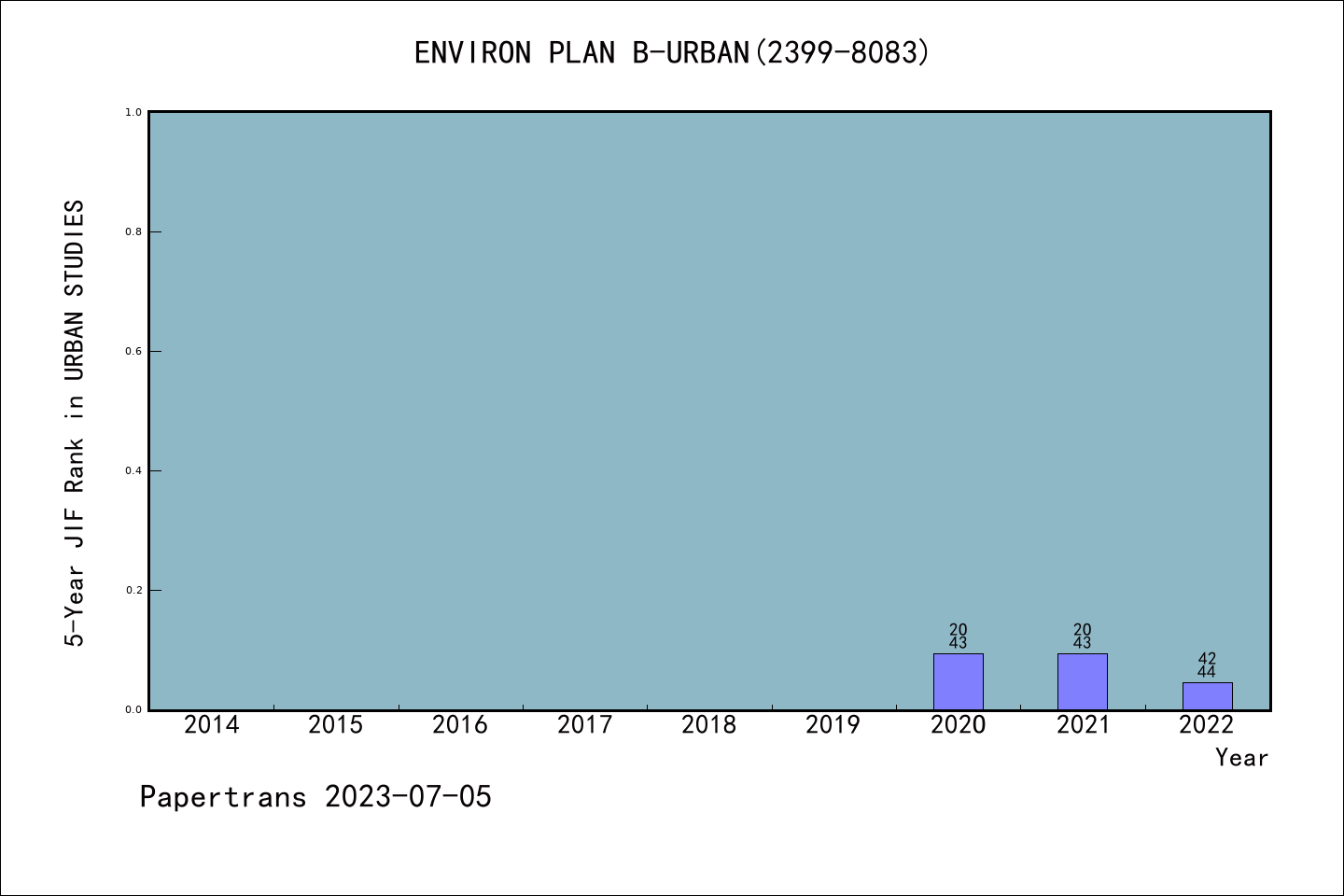 SSCI期刊Environment and Planning B-Urban Analytics and City Science历年派博系数(Pindex)