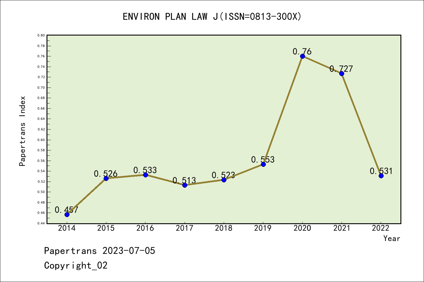 ESCI期刊Environmental and Planning Law Journal历年派博系数(Pindex)