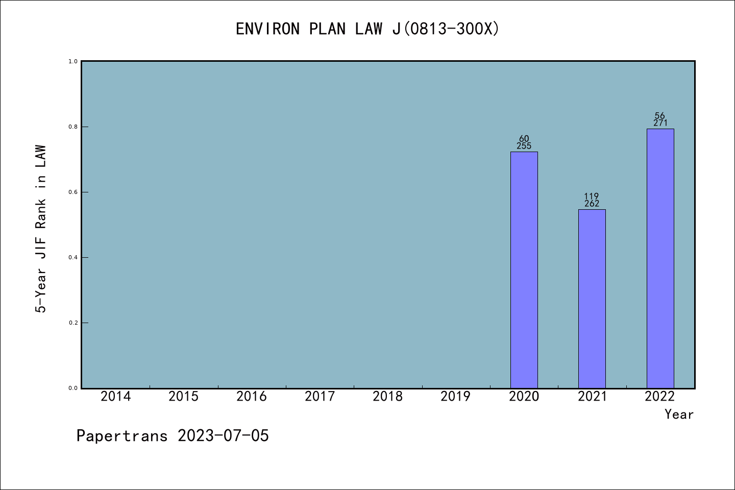 ESCI期刊Environmental and Planning Law Journal历年拒稿占比
