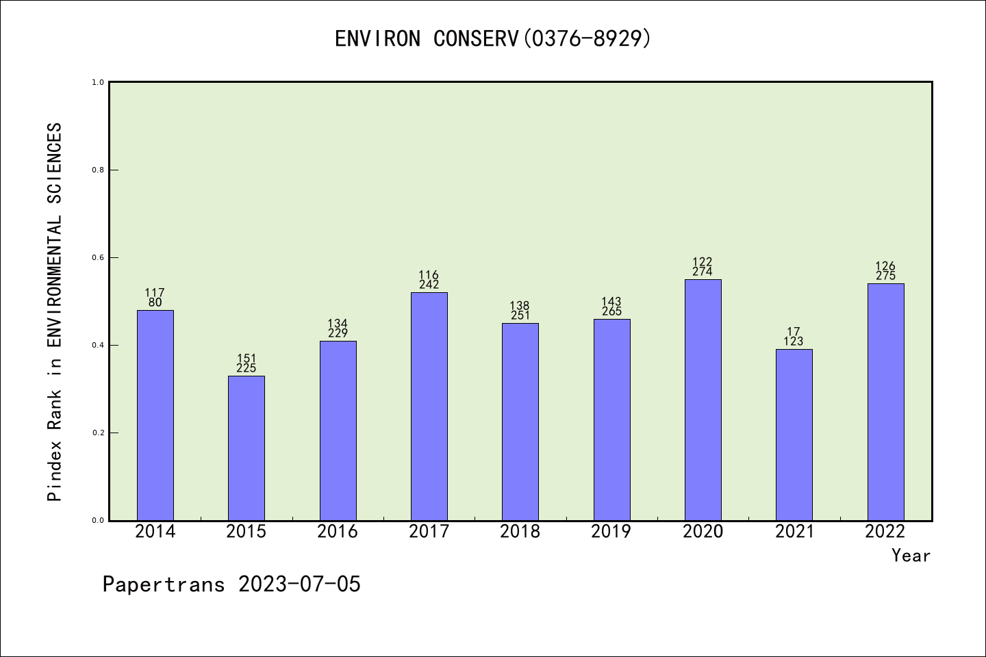 SCIE期刊ENVIRONMENTAL CONSERVATION历年派博系数(Pindex)