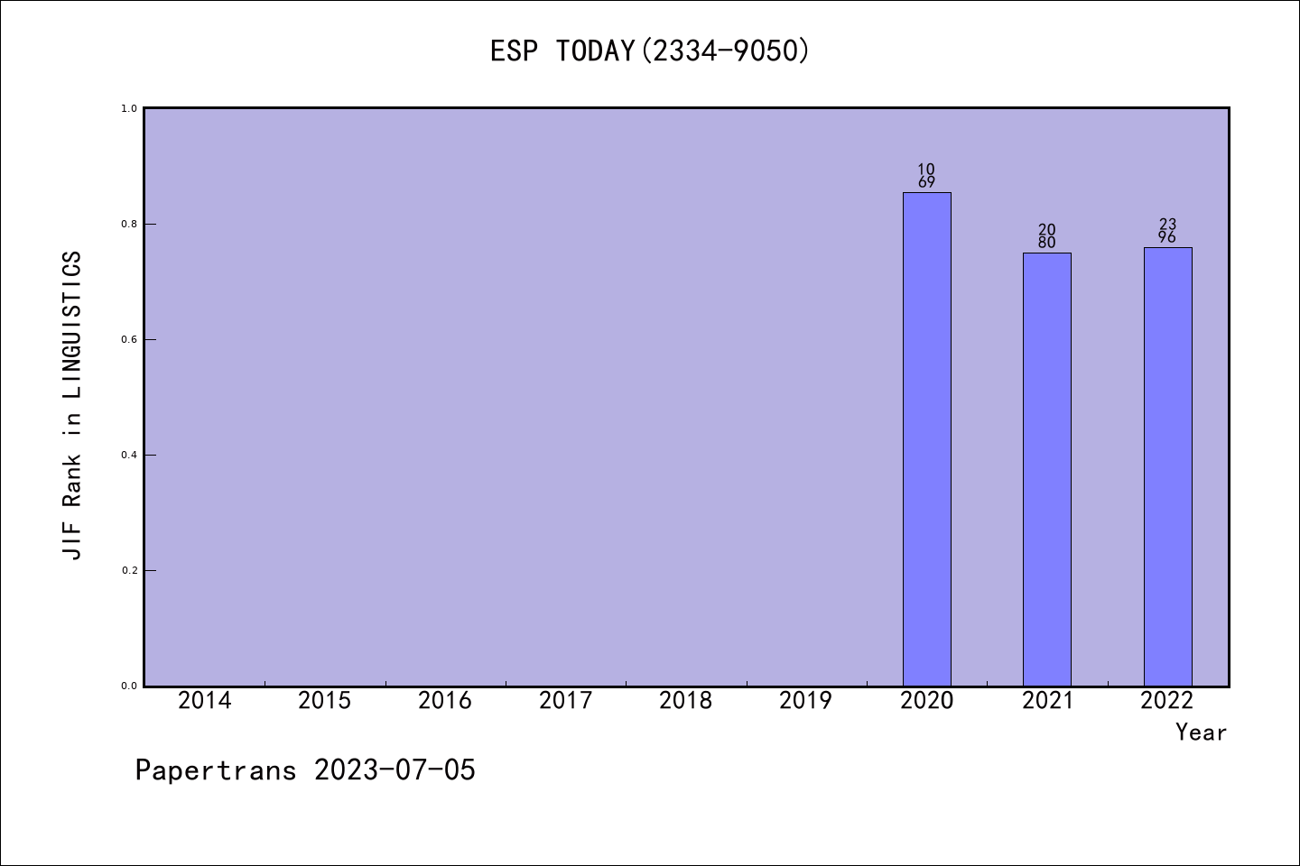 ESP Today-Journal of English for Specific Purposes at Tertiary Level派博系数(Pindex)学科排名@ESCI语言学
