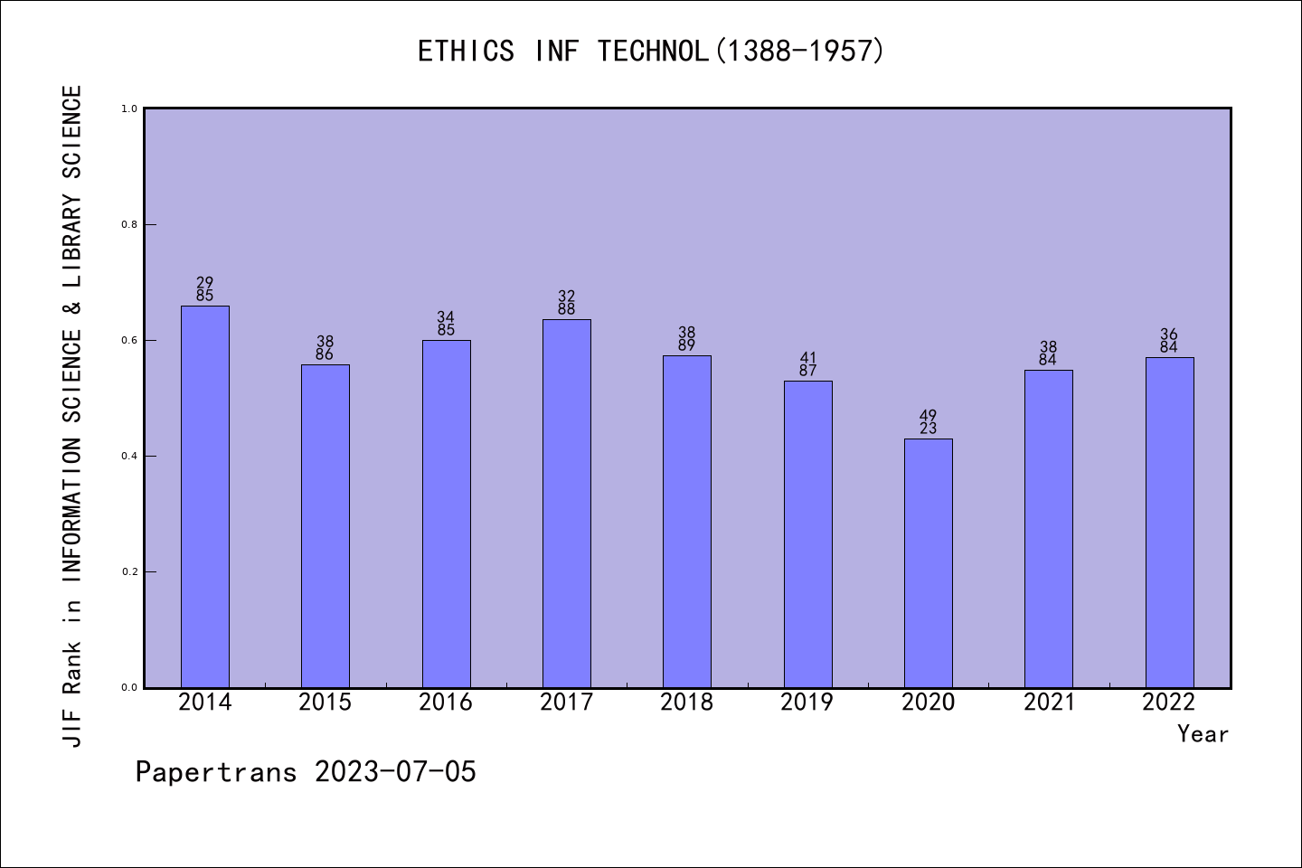 ETHICS INF TECHNOL图表质量排名@SSCI情报学与图书馆学