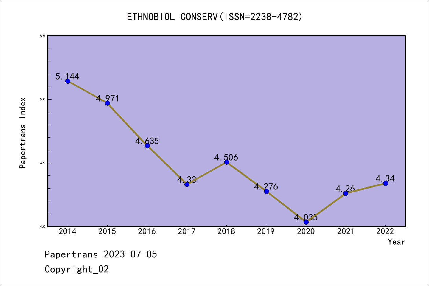 派博 系数 | ESCI期刊Ethnobiology and Conservation历年派博系数(Pindex)