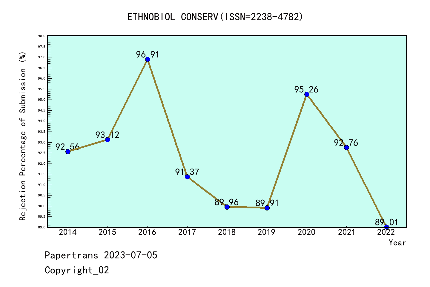 拒稿 占比 | ESCI期刊Ethnobiology and Conservation历年拒稿占比