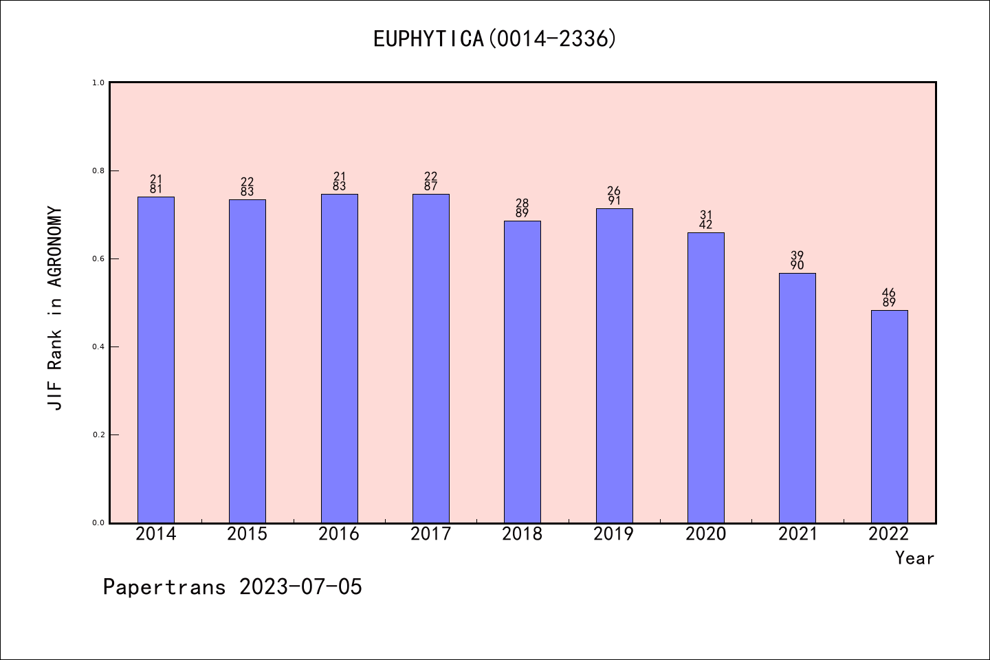 SCIE期刊EUPHYTICA历年派博系数(Pindex)