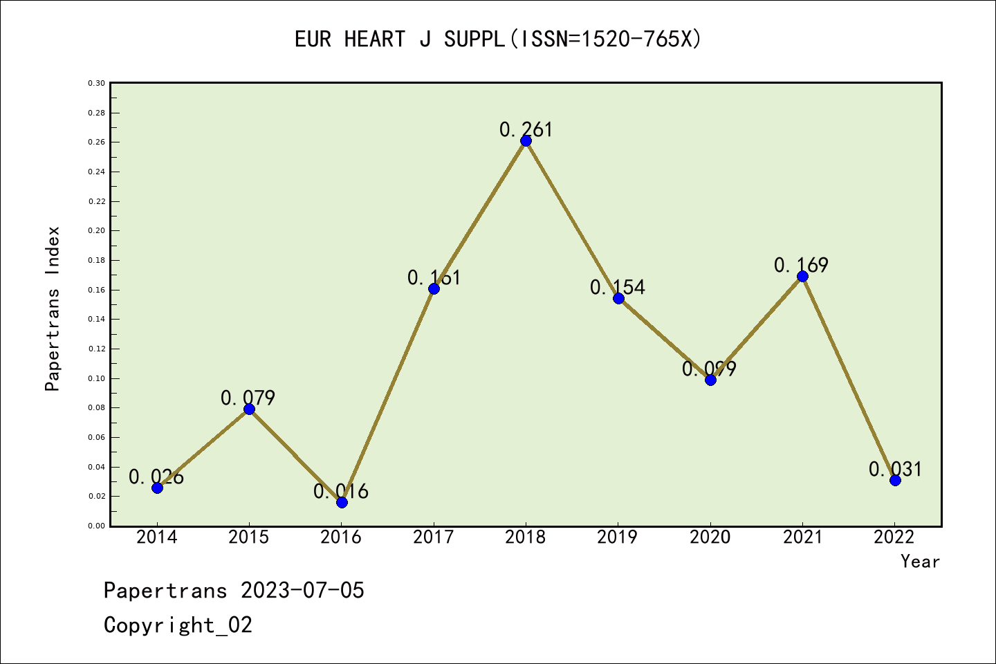 SCIE期刊EUROPEAN HEART JOURNAL SUPPLEMENTS历年派博系数(Pindex)