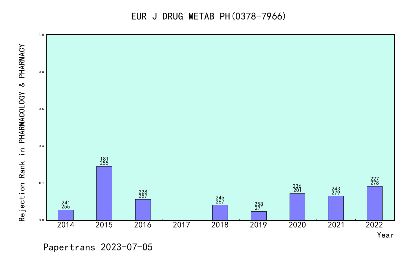 EUROPEAN JOURNAL OF DRUG METABOLISM AND PHARMACOKINETICS拒稿率学科排名@SCIE药理学与药学